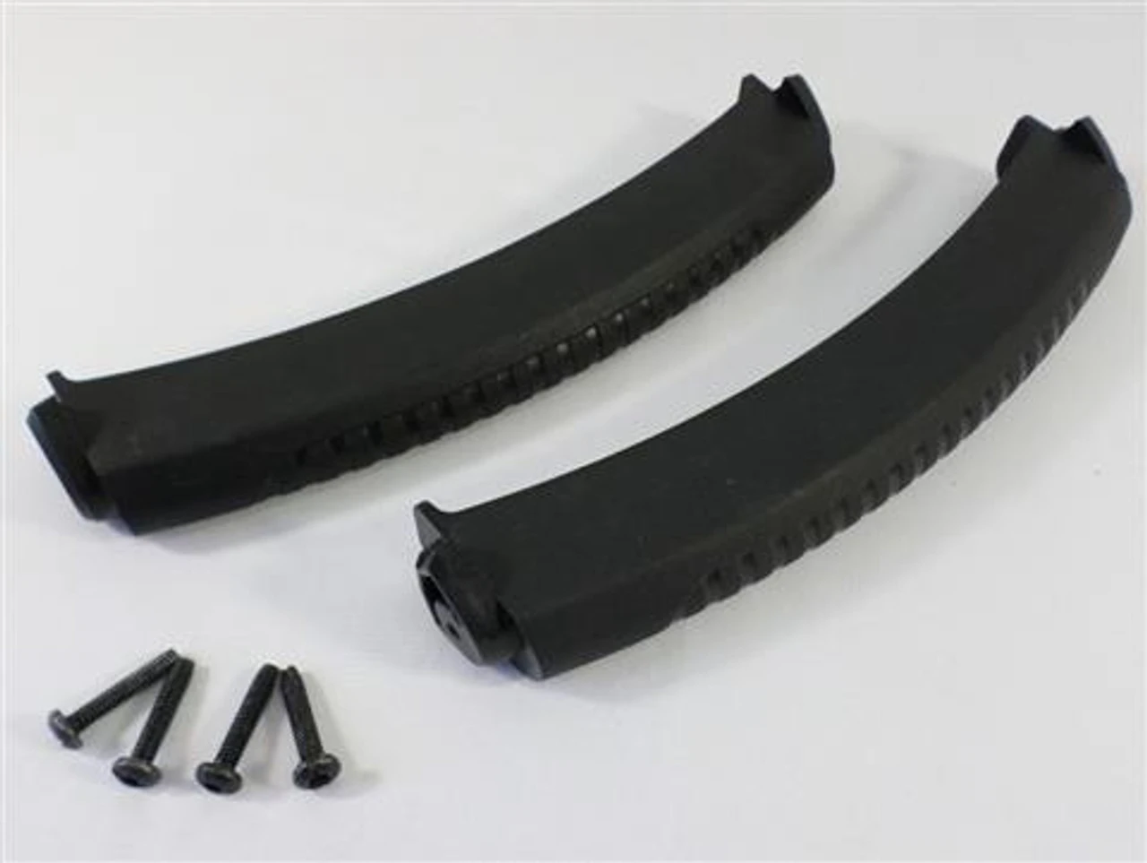 Set of two “Side Handles” for Weber Q2000/2200, “model years 2014 and newer”. Overall length is 11-3/4″ (including the leg insert tabs). Mounting hardware and installation instructions included.